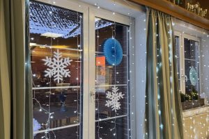Winterball mit Schnee vor der Tür
